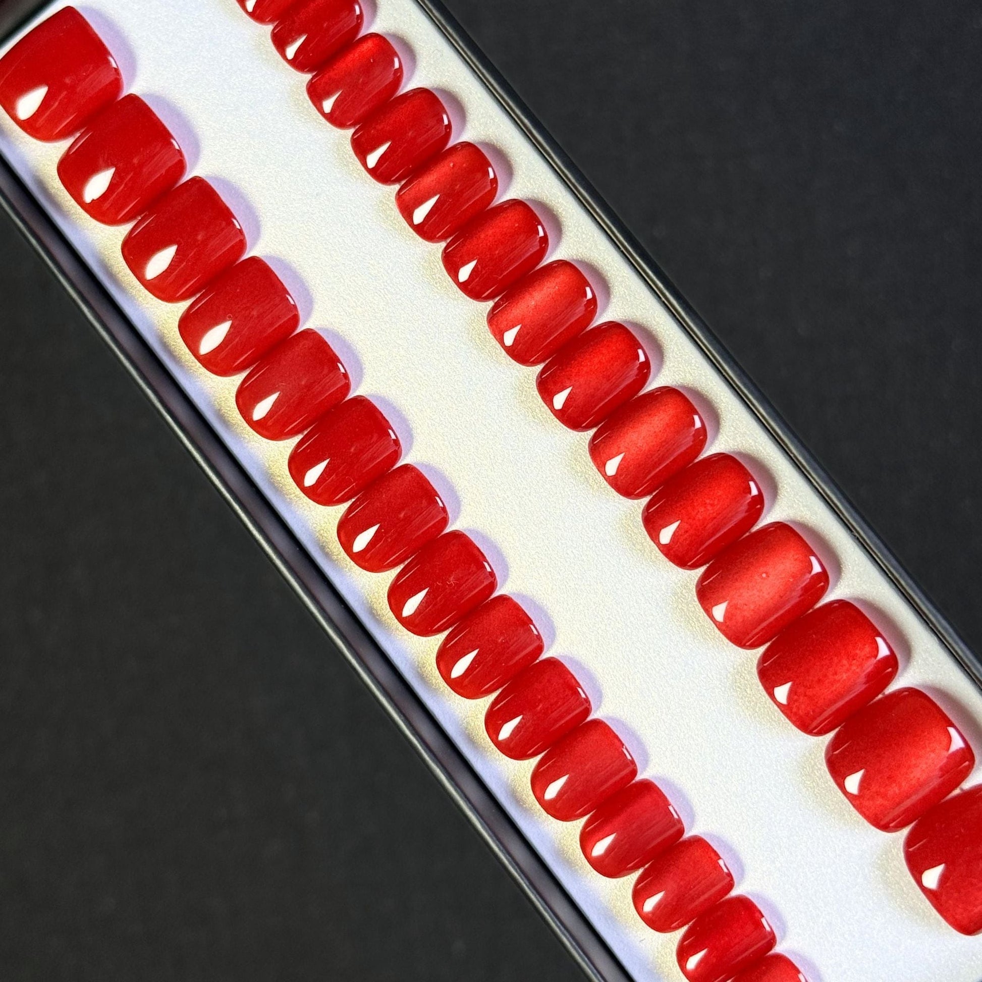 Tres jolis dans l'emballage. Le extra court est vraiment court, je me dois couper les ongles avant la pose.